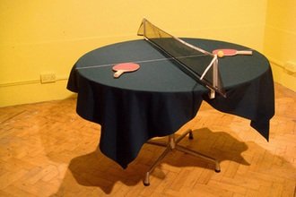 第二则,也同样是在19世纪后期,而事情发生在英国伦敦,有两位青年网球迷看完温布尔顿网球赛后,顺便来到一家餐厅吃饭,在等候侍者上菜时,两人却对刚看完网球后的一个战术问题争论不休。于是便从酒瓶上拔下软木塞当球,以餐桌为球桌,顺手拿起雪茄烟盒上演一场别样的球赛。旁观者不经意间喊出了"table tennis"