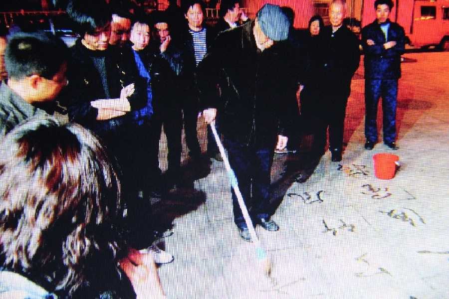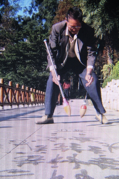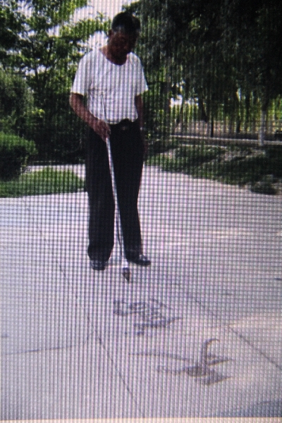 这下我恍然大悟了,噢,原来他要在水泥地上练习书法,这倒挺新奇。