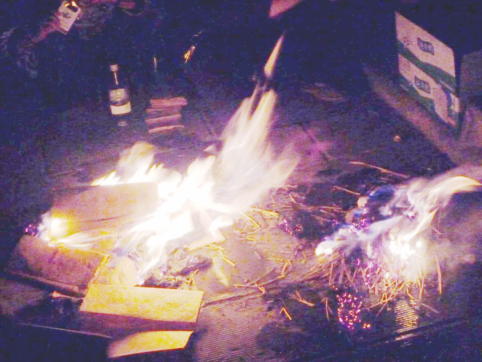 因为一些原因,没有柴火,于是只能用麦草点燃。等到烧时。天已经全黑了,微弱的火光在黑夜里显得格外明亮,风一吹,火焰东倒西歪的,好像是逝去的人真的来取钱了。我们手里拿着纸,一点点的烧,生怕烧的多,那些祭奠品燃不了,终于烧完了,大家就都跪下来,虔诚的给逝去的亲人磕上三个头。