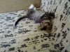 小猫白天喜欢趴在窝里睡觉,晚上出去活动;住在厨房,喜欢吃鱼鳃,喜欢玩毛线团等玩具。它胆子很大。有一次,它敢和狗打架,坐在狗身上,抓住狗的尾巴,可神气了。
