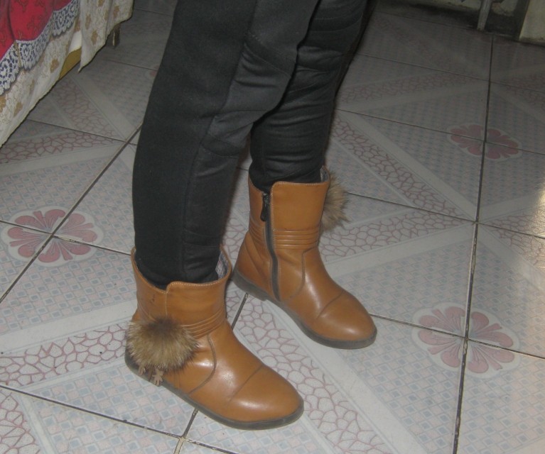 后来我回家时的时候,对着鞋产生了好奇,如果这鞋夏天也能穿的话就更好了,我就开始了想象。 我的想象是:如果把这两个 小熊当成按钮,按一下左面的按钮,棉鞋立刻变成长凉鞋,然后再按一下右面的按钮就变成原样,再设一个按钮就是变颜色的按钮了!