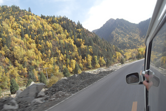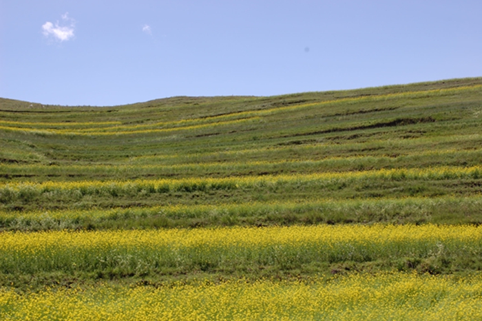 看,那山顶上,烟雨迷蒙,仿佛是一条条白龙盘着青峰翠峦。在那白茫茫的烟雾中,偶尔可以看见金黄的麦子,黄白相间构成一幅幅似乎淡薄但又非常绚丽的图画。