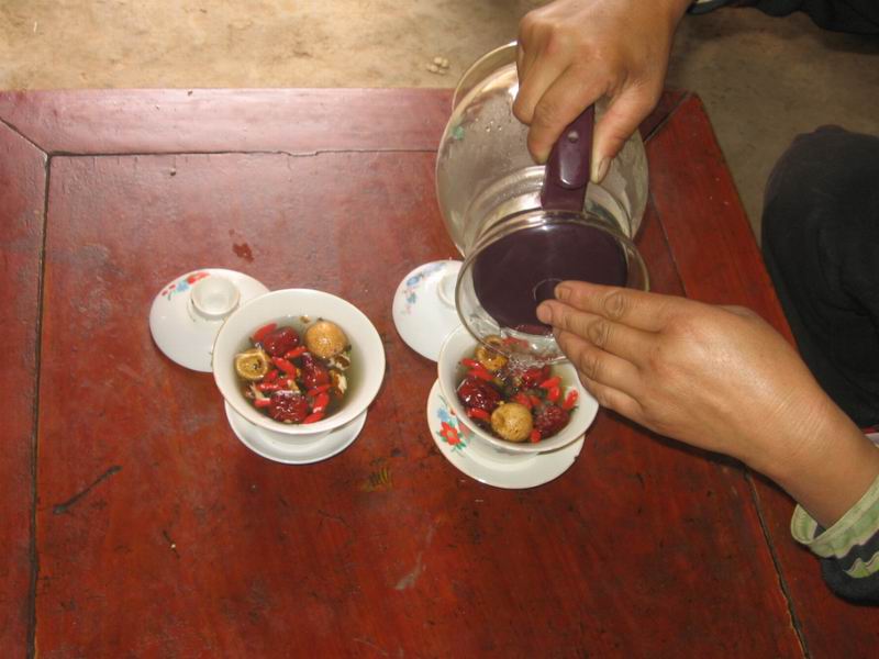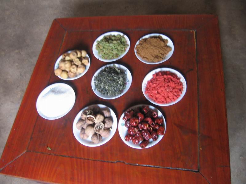 八宝“盖碗茶”是我们当地地区穆斯林招待客人的一种上等好茶。它的制作、配料虽很麻烦,但是泡出来的茶气味与别的茶截然不同。