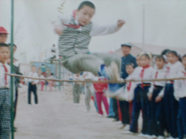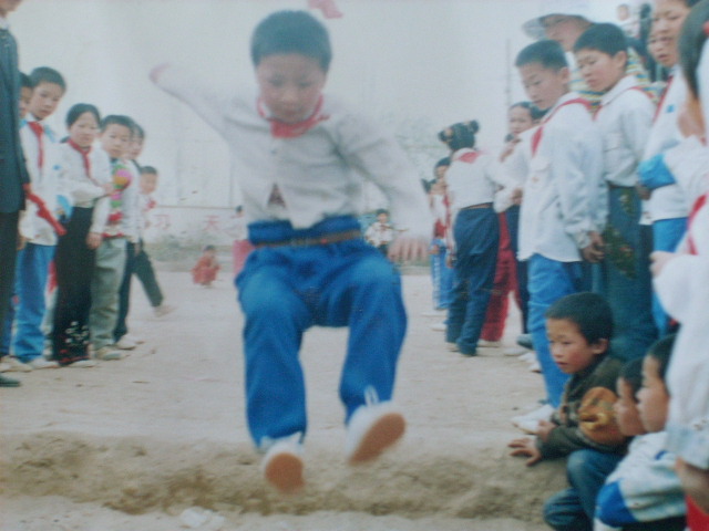 其次就是跳远比赛。他们在远处听老师的口令,然后飞快地跑向踏板,用力向沙坑一跳。老师马上测量他的成绩,但他高兴得拍拍土走了。