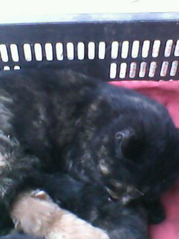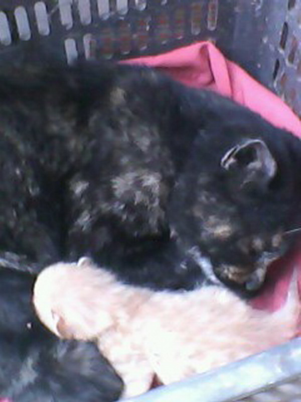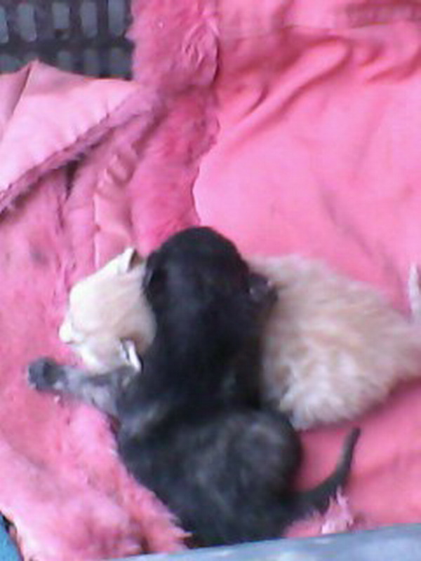 不过一小时,Mary便产下三只可爱的小猫,由于刚出生,小猫全身还是湿漉漉的,这时的Mary像个温柔而尽职的母亲,慈爱地舔着小猫的全身,又过了一两天,小猫皮毛的颜色已渐渐呈现,我仔细观察了一下,是两只小黑猫,还有一只小花猫,此时的小猫咪连眼睛都睁不开,只有老鼠大小。但在第三天,却有发生了一件令人伤心的事:一只小黑猫死了,大家都不知原因。Mary也许还不知道,她一直呆在小黑猫旁边,十分怜爱地舔着小猫,温柔地叫着,仿佛是在呼唤她的孩子,看着Mary的样子,大家也不觉得伤感起来。