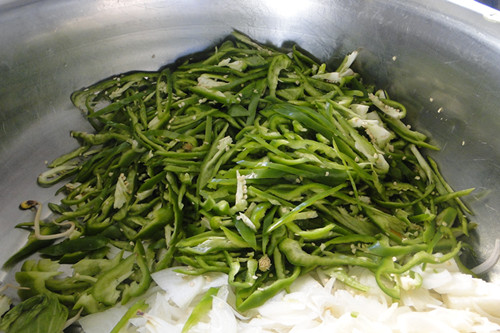 接下来就到切了,切的时候千万要注意用力均匀,否则,面于面之间就会黏在一起,分不开了。最后就到下饭了,这时你可以根据自己的口味放调料,最后,再加上自家腌制的咸菜,那可真是美味十足啊!