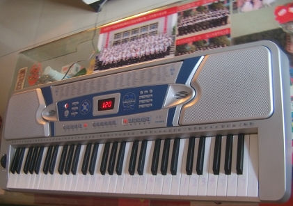 记得在八岁的时候,我对爸爸说我想学电子琴。于是爸爸就给我买了一架雅马哈牌六十一键教学电子琴。琴键的颜色分两种,普通键纯白色,晶莹剔透,特殊键像黑色的宝石,闪闪发光。琴面上有功能键,辅助键,调节按钮,配音按钮等,还有一百二十首中外著名乐曲名,如果你想弹其中一首的话,直接点一下,就能跟着名师弹奏了。最有趣的的要数乐器功能键,各类乐器样样齐全,如果你想打鼓只需轻轻一按就会由你在键盘上上任意敲打,多么神奇啊!在琴正中央有一块小小的led屏,可以显示你在弹琴时的节律或者时间,歌曲名等。无论是谁都会被它的魔力吸引,聆听它发出悦耳的声音,于是我不由自主的坐在琴前,伸出我幼嫩的小手,弹啊弹啊……