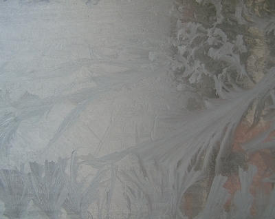 大自然的手这样的神奇,居然为麦田穿上了白色的棉袄,真漂亮,就像真的一样。再往上看,一幅又一幅的冰花图案让我眼花缭乱,不由得继续往别的窗户上看。 再看看这幅冰花图,好像是七仙女驾着七彩云下凡似的。又好像八仙过海,总之各有千秋,我看着看着都入了迷,能编出一个又一个动听且意味深长的故事来,每个故事都代表了一副冰花图画。