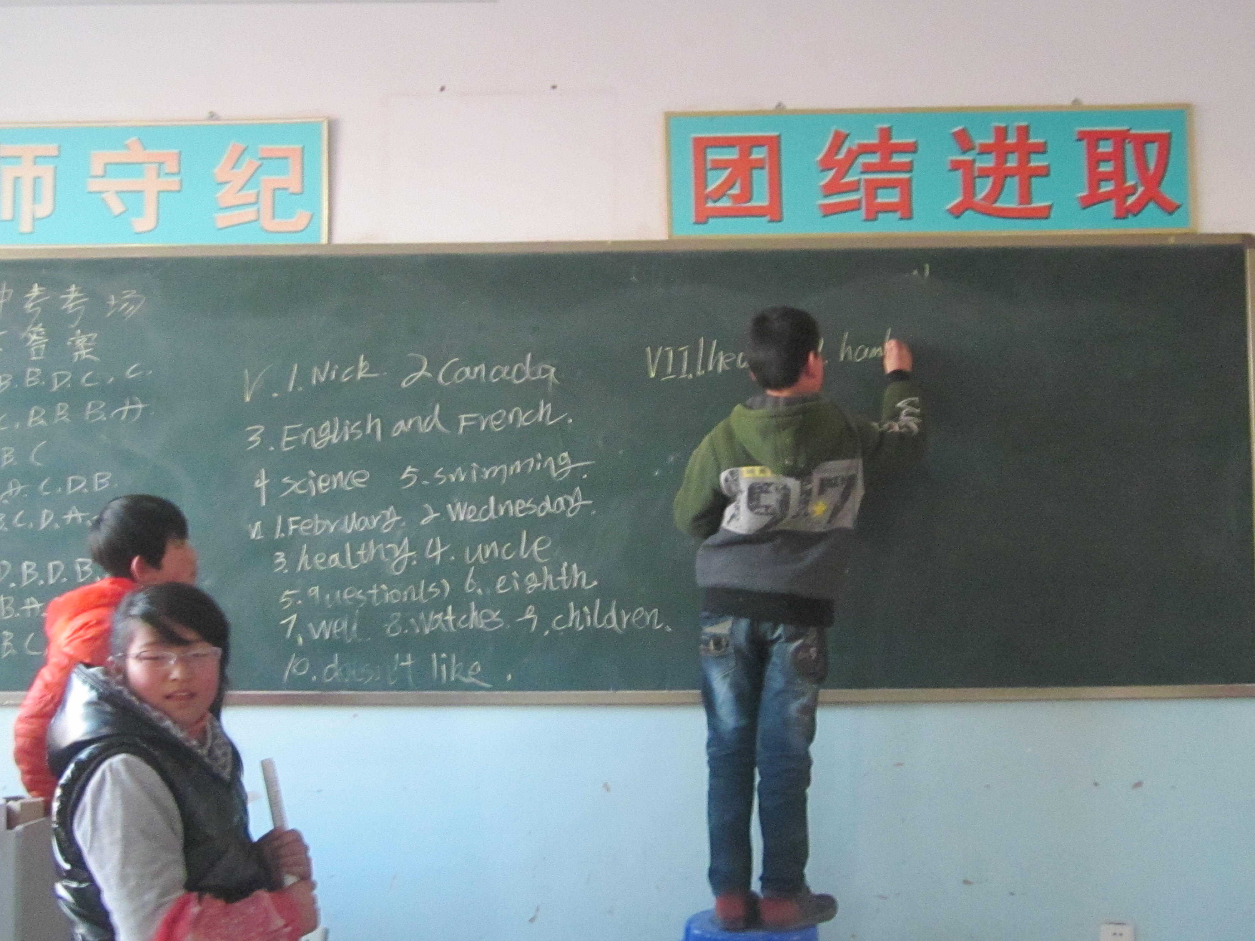 这时,教室里的空气不再流动,同学们都在寻找答案,有的打开书,有的向别人问。我们都害怕老师提问,因为我们都回答不上来。老师连叫了七位同学,依旧回答不上来问题的答案。老师的脸变得严肃起来了答案。老师让我们一起回答,但教室里静静地,没有一点声音,老师生气了,狠狠的将书放在讲桌说:“现在好了,要考试了,你们这个样子一定能拿倒数第一”。说完就走了,狠狠地将门关上了。这时教室里安静极了,连呼吸的声音都能听。没有一个同学说话,同学们都在看书。下课了,一向爱玩的我们都趴在桌子上。很快十分钟过去了 , 要上英语课了。本来要好还表现的,但没想到和上次一样,同学们把背的短语都忘了。经过这两节课同学了们好像都知错了。开始认真的复习了。同学们再也不愿让老师生气