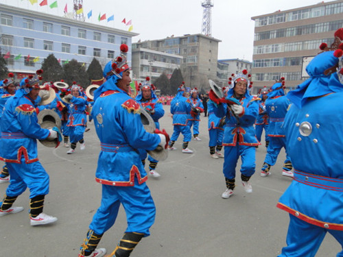 "社火\'刚来时,经过哪家,哪家就会放起鞭炮,来年定会有喜庆."社火\'会到庄上庙里迎神,然后,找一个较为宽敞的地方开始操练起来.进场时,先是"大老爷"带队,他手拿鹰羽扇,看起来威风凌人.