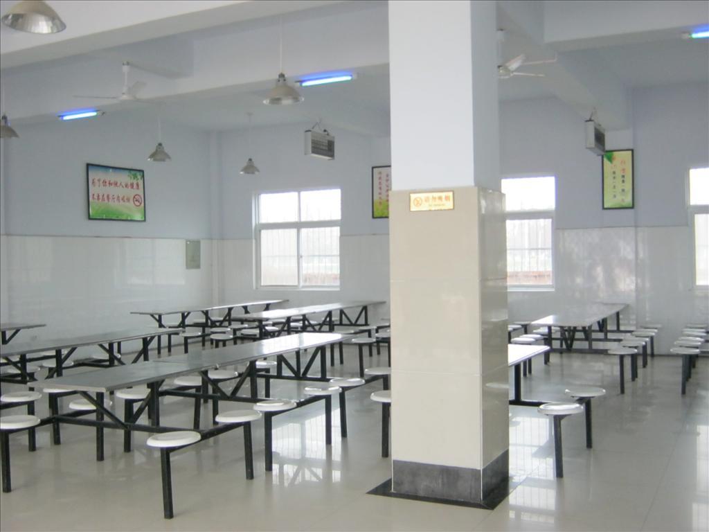 首先,我们参观的是学校餐厅的大堂,里面干净整洁,墙壁都贴着白色的瓷砖,地面也铺设着地板砖。餐厅大堂的桌子摆放的很整齐,同学们吃饭的时候终于可以坐在那里安安稳稳的吃饭了,不用像以前一样站着或者爬乒乓案上吃饭了。