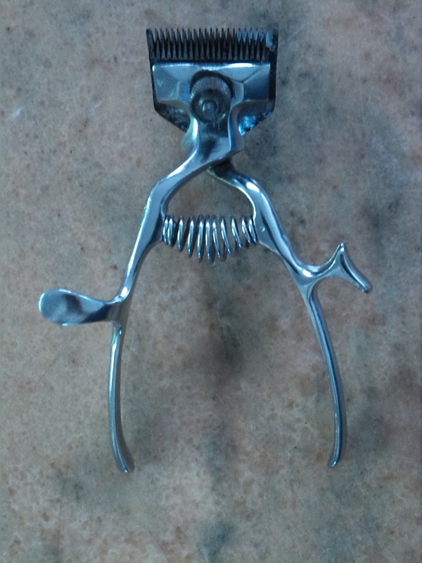 首先,最古老的就是那把推子了,听我姥爷说在那个年代,几乎每个人家里都有一把这样的推子,这把推子是我舅小时候剃头的,到现在为止已经四十多年了。