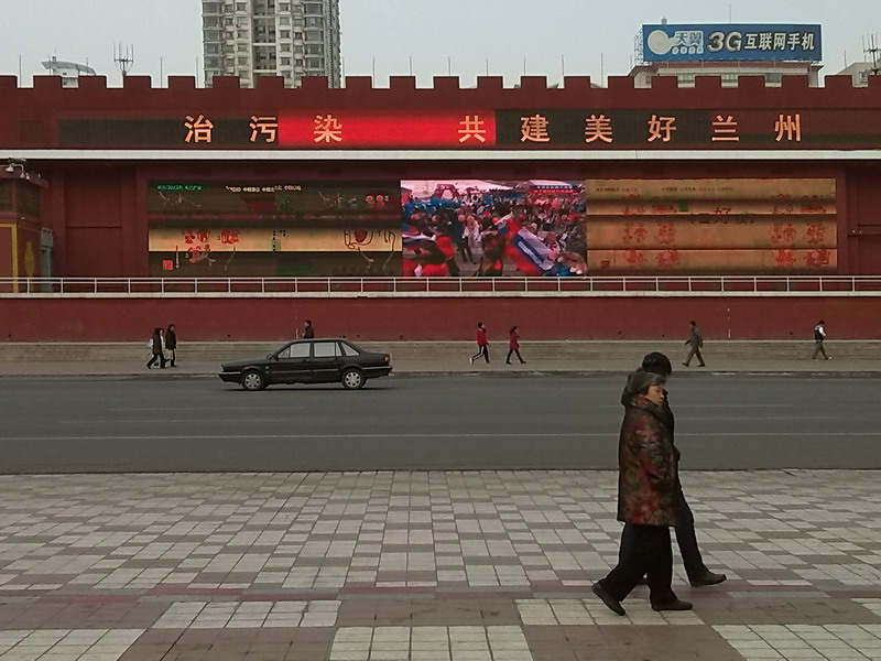兰州市甘肃省的省会,也就是省城,并且还是古丝绸之路上的金城,而东方红广场就立着一座“丝绸之路”的牌。