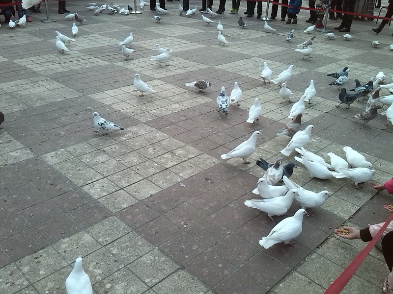 而广场上有一处专门放鸽子的地方,这里的鸽子好像不怕人一样,这也是和平的象征。