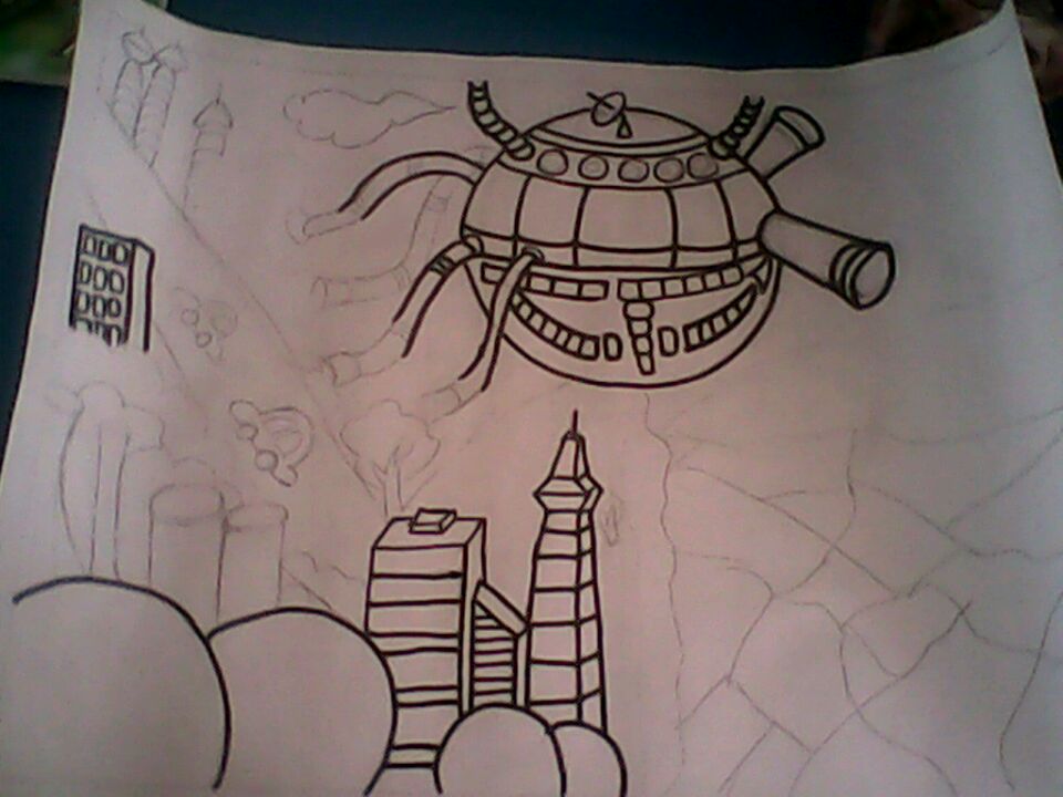 准备开画,先用铅笔画好了大概的样子,又开始用黑色的笔勾边,勾边的时候最好一次画完一部分,否则线条会断断续续,不好看。