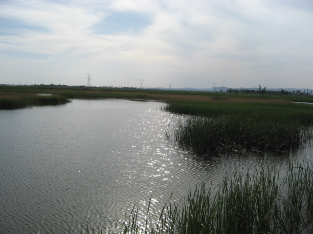 随着游客的纷纷离开,在一天喧闹中,湖面显得格外寂静。这是天色湖光相接、一片碧绿,广阔无际。湖水在夕阳下,波动的光闪着金色,仿佛撒了一层纱。水鸟也纷纷回了家,偶尔的一、两声鸟叫声,打破了湖的寂静。