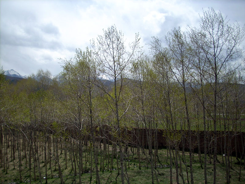 丁香花开了,春风吹拂,一阵浓浓的香味扑鼻而来。梨花也开了,像一片晶莹的白雪。路旁,柳树发芽了,二月的春风似剪刀,一夜间裁出无数又长又细的嫩叶。