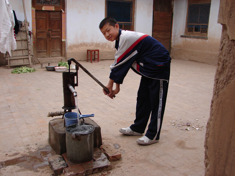 “我的故乡并不美,低矮的草房苦涩的井水,男人为你累弯了腰,女人为你锁眉梢……”这首歌唱出了过去家乡的贫穷,看!今天我们家打了机井,我赶快提上桶来压水。看着“哗哗”的流水,以后我们家就能喝到井水了,别提我的心里有多高兴啊!