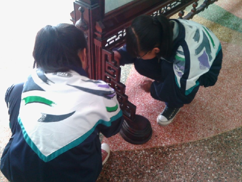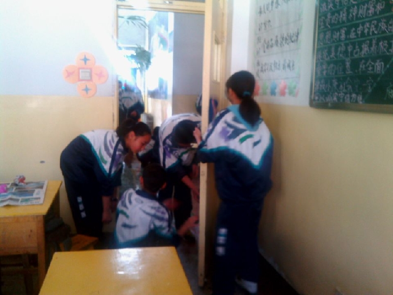 Look!这是杨玉馨和杨玉英擦公告栏的照片。看她们擦得多认真,只是看到我要拍下她们很紧张,制止着我,所以我便偷偷拍了下来。接下来,再看,这是一些同学擦门时的情景。还有的就是在摆抹布时我拍下的。这些可都是平凡小事中珍贵的回忆,其实还有很多同学的忙碌时的照片,在这里我就不一一说明了。