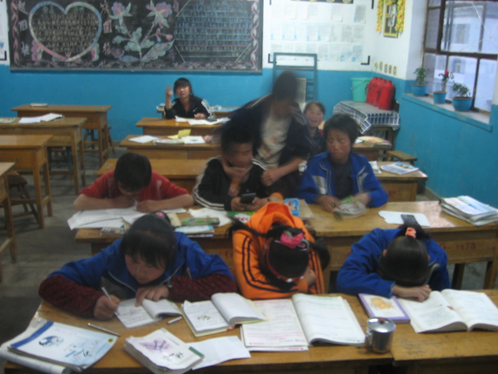 班主任来时学习的劲头不小,班主任有一个笔记本电脑,只要班主任在前面看电影时,他们三五成群的伸长了脖子一个经的向电脑上看,看电脑上面演的电影,看来用心并不转一。还有拿镜子梳头的,他可真有趣,一个大男生一天身上那一个小镜子和一个小梳子做到后面梳头太有点娘娘腔了。