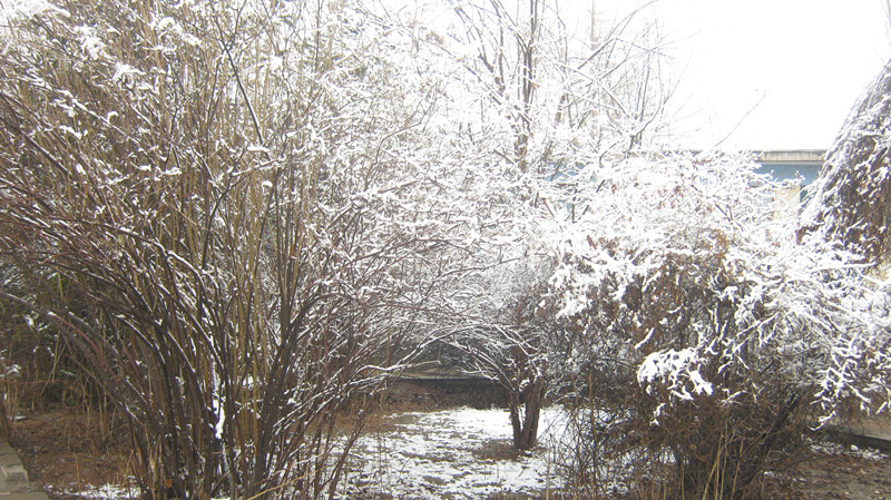 走在路上,仿佛像走在童话的世界中。一切显得那么平静,那么安详,那么诱人。雪想一个淘气的小精灵,在哪都能看见他的身影。一会躲在树上,给树挂上一件银光闪闪的斗篷。一会又趴在枯草丛里,给草盖上一层厚厚的棉被。一下躺在路上;一下又落在我们的头上…...一排一排,层层叠叠,,整整齐齐的教室都“白了头”。是那么严肃,威武。