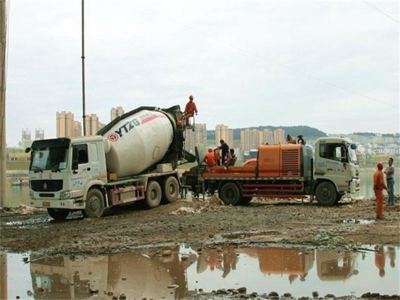 当我回到我原先的位置的时候,看见一辆水泥泵车开到了管子的边上,没过多久就下来了几个叔叔。