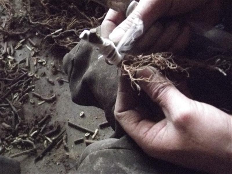 最后爷爷拿来了先前准备好的薄膜条子,然后慢慢的缠在猕猴桃果树的伤口上,包括穗条上也要缠一些,才能保证树苗的成活率高,然后室内嫁接好的嫁接苗,还要放在家里潮湿的地方放上几天天,使其伤口充分愈合后。