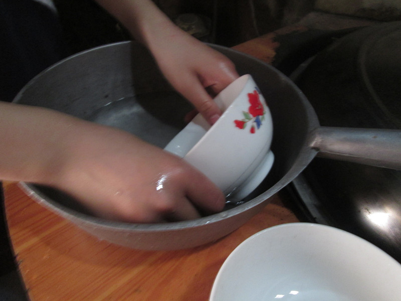 我拿出两个碗,把碗清了清,就用锅铲把饭平均装进两个碗里。再往锅里加些水,一便吃完了饭有热水洗碗。我又拿勺子盛了两个红豆腐装在盘子里摆在饭桌了,我又让妹妹去拿了两双筷子,这样,一顿丰富的午饭便展现在我们眼前了。