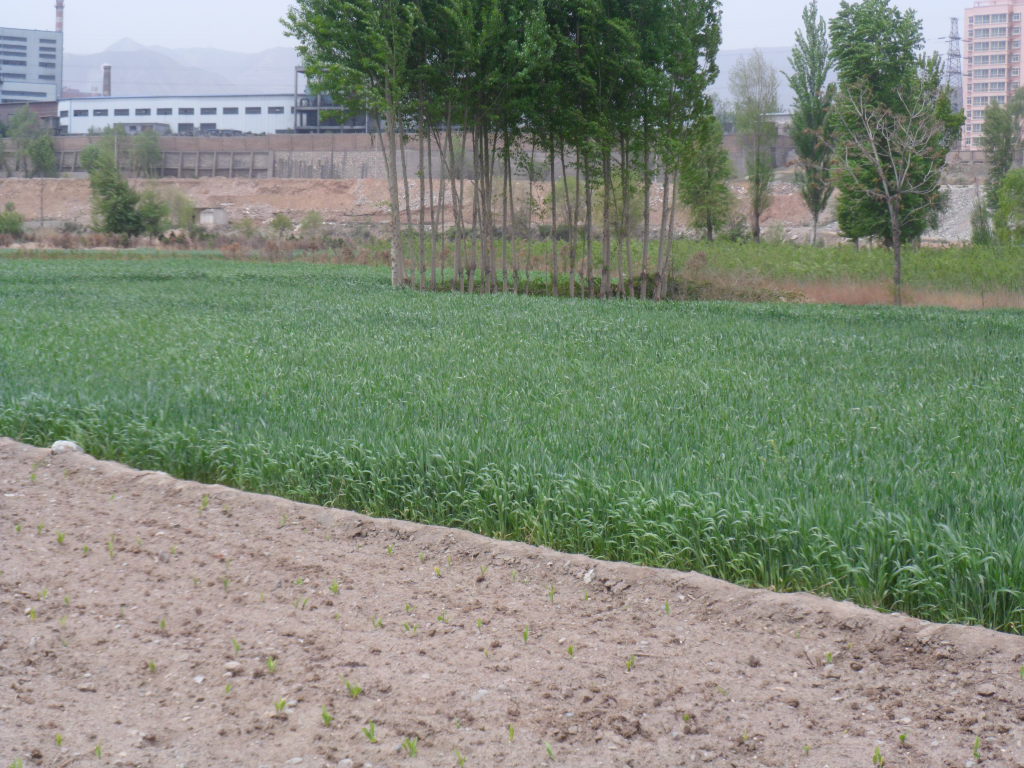 这天太阳很温暖,阳光照在人身上暖烘烘的,不像前几天晒得人难受。河边地里的麦子已经长高一节了,密密地铺向远方。旁边地里种的是玉米,长到四五寸高了,星星点点地生长在田地上,像秋天夜空中散开的星星一样。玉米嫩嫩的,