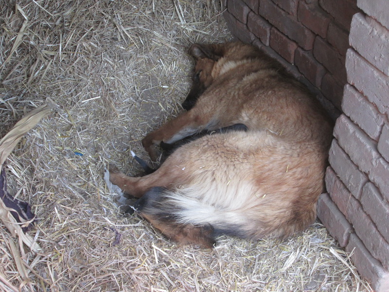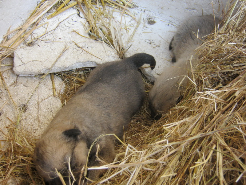 过了一会儿,狗妈妈吃食去了 我便趁机悄悄地进去看幼崽。好可爱!三团粉红色的小肉球,眼睛还紧紧地闭着,在那里叫着。正在此时,狗妈妈吃食回来又发现了我,朝我飞奔而来,并凶猛地叫,吓的我又赶紧跑了出来。