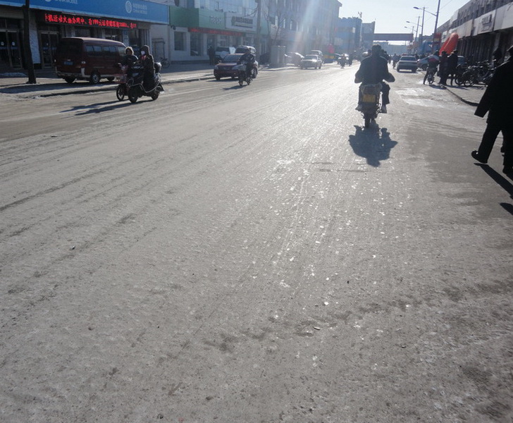 路上有好多冰,我小心翼翼地挪动着脚步,生怕摔个“狗啃泥”。虽然没有滑倒,可一路上却没那么顺利。