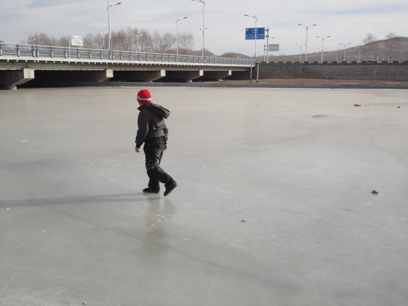 冬天的时候,这条小溪“冻僵硬”,我和姐姐拿木头做一个冰车,再拿两根铁棍,以防滑倒。