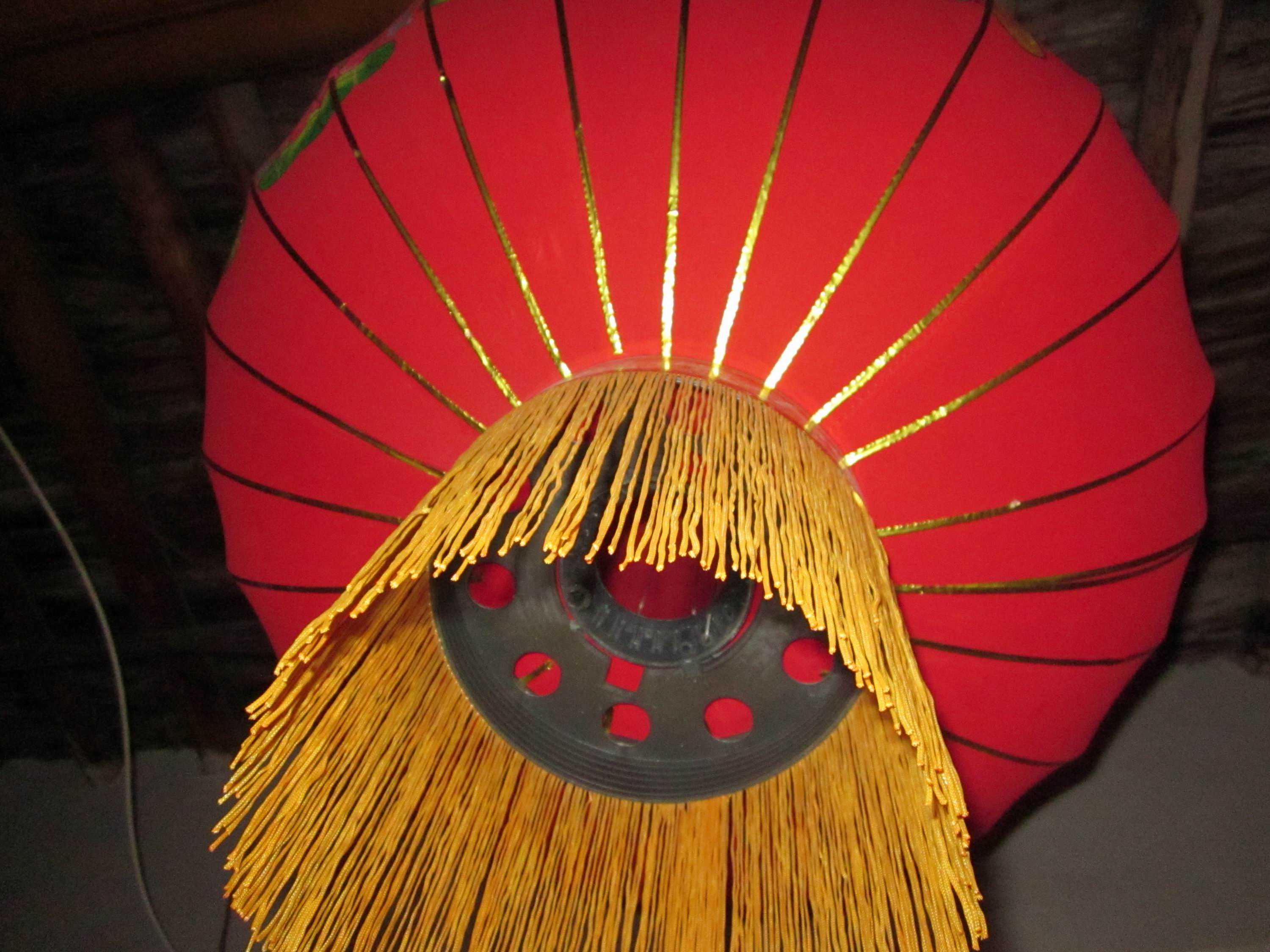 据家里人说,灯笼就是有几根铁丝围成框架,再有红布包上,挂上线条所组成的。听着简单,可看着爸爸买来的灯笼,我觉得没那没简单,于是我细心的观察。发现做一个大灯笼需要有24根铁丝做成框架,还需要六块像菱形一样的红布,最后把它们一块块的缝起来,最重要的还要美观,我还观察到凡是铁丝箍起的地方。都用金色的彩条镶上好看的边。顶上,是由一条二到三厘米宽的铝围城的圆圈。