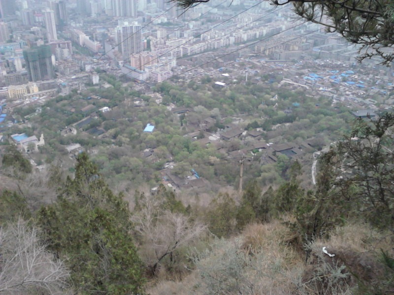 登山的人不多,大都是一些大学生,他们或三三两两,或结伴而行,偶尔也有白发苍苍的老者,步履蹒跚的老妪,他们手拿相机边走边照,累了就就地休息,俯瞰整个五泉公园。爬了大约一个小时后,女儿并没有疲惫的倦怠,但我还是提议喝点水休息一下,顺便远眺离我们已远去的城市。
