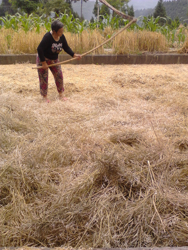 干了一下午活的爷爷奶奶,再怎么说都已累了。回到家,看着这一院坝的麦子,那必须是我来收咯,念初中那会,五月份时节,回到家爷爷总爱叫我和他一起收麦子,我们两个人一起合作,很快就会完成。以快成年的我,已经可以一个人收麦子了。说到麦子和谷子,我总会搞混,现在才知道:麦子是打面的;谷子是打米的。真笨,念中学才把它们分清楚。如果让我收麦子和收谷子,那我宁愿收麦子,因为麦子不扎人,灰尘少。