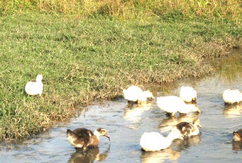 在草地旁有一条小溪,会看到一群鸭子,游戏在水中,有的鸭子嘴里叼着食物,有的鸭子正准备扎到水里觅食,有的鸭子向溪水中央游去,溪水边的草丛上还停着一只不敢下水的小鸭子。它们玩得多畅快。 乡村的生活是自然、和谐的,它会给你带来享不尽的快乐!
