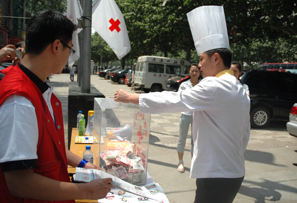 在活动现场,我看到一个类似农民工的大哥哥,他摸完了所有的口袋,将自己口袋里的钱一分不留地捐了出去,而我看到我的手中却提着一些干馒头。