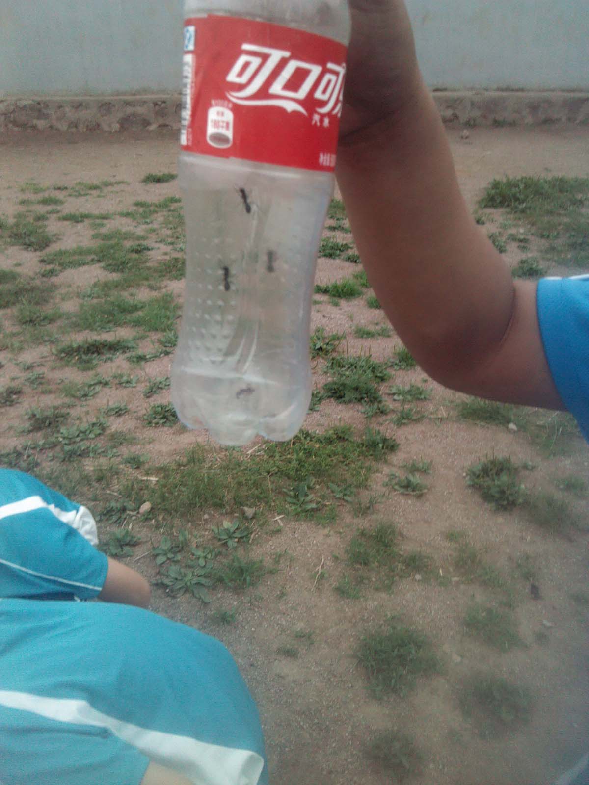 既然不能让蚂蚁自己走进瓶里,那就上硬手段。我们就开始用手抓蚂蚁,硬往瓶里塞。别看蚂蚁跑得快,可还是没有我们手快,不一会儿,几只肥肥的蚂蚁就在瓶里了。它们到了瓶里也不老实,竟然能顺着直立的瓶子爬上来。眼看着一只蚂蚁就要爬出来了,同学想了一个好办法,使劲摇瓶子,要把蚂蚁摇晕,这办法挺管用的,蚂蚁掉下去了。