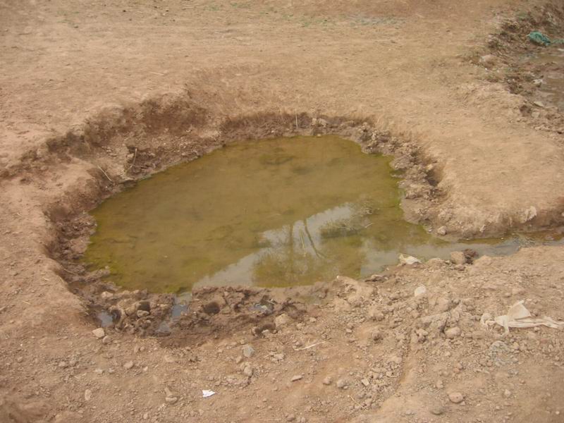 在我们家乡原先有个土泉,供人们饮用。土泉在离家很远的沟里,在沟里找一个比较平的地方挖一个坑。坑里有犯眼,往上犯水。犯上来的水很清,但由于牲口的溅踏,有时还刮大风,刮进一些泥沙,所以水就显的很脏。