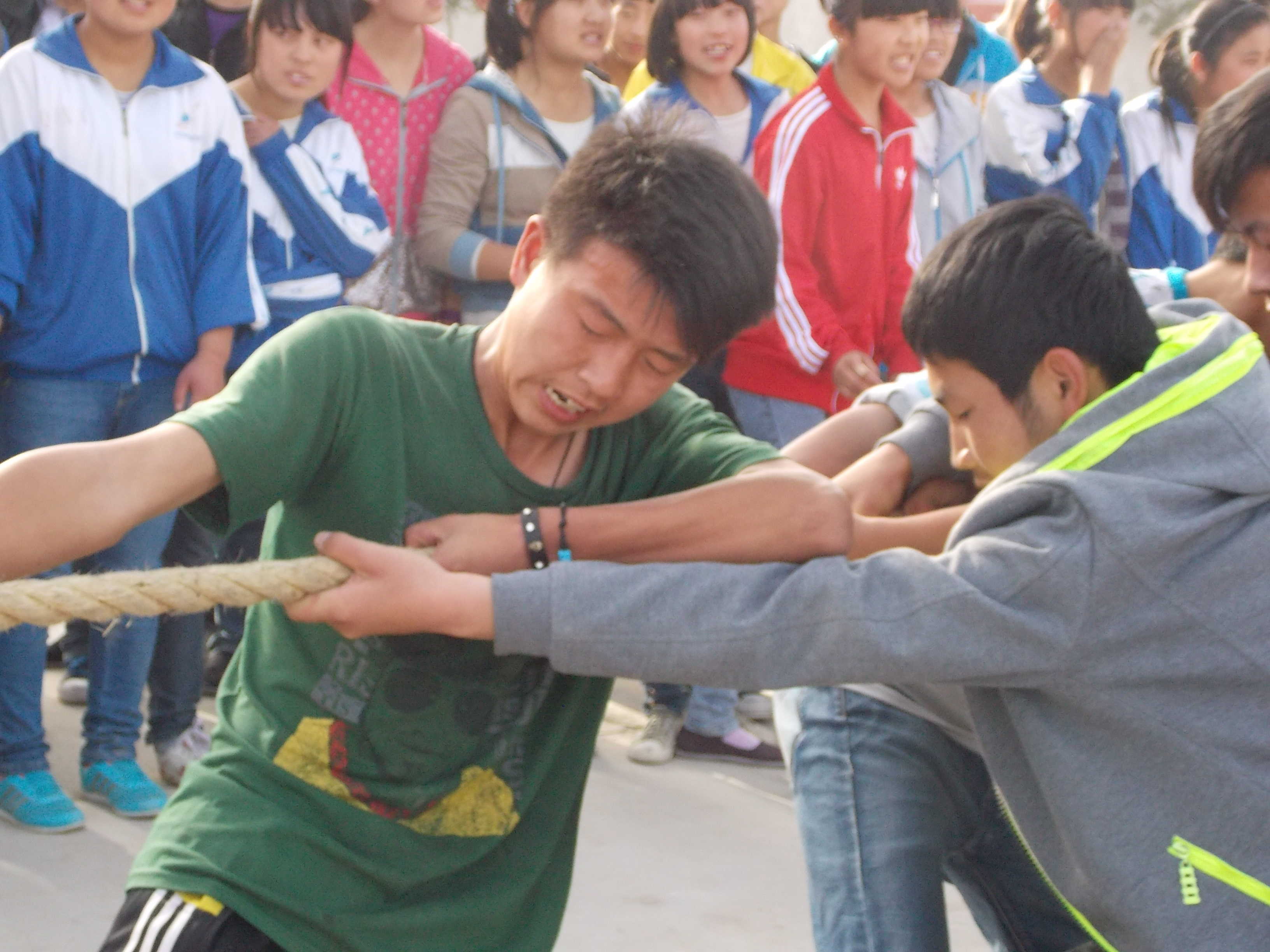 拔河比赛开始了,只听哨子一响,两边拔河队员奋力向后,“加油!“加油!”在耳边回响,队员们的汗水一滴滴撒在操场上。又听见一声哨子声响,左边队员胜了。但胜了的队员并不骄傲,他们安慰输了的队员,来年再战。这就是“友谊第一,比赛第二”的精神吧!
