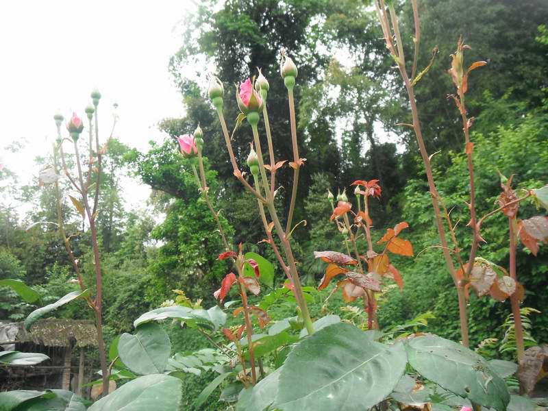 相反,他茎上的花朵则是格外的惹人怜爱。花朵下是花柄,花柄像一颗浑圆的翠绿色玉石,花瓣紧紧包围的中央是一块似太阳般的花蕊还有细细的白白的嫩嫩的花丝。这花香是醉人的幽幽的暗香,花儿像一位位朝气蓬勃的少女直直的伫立着微笑着,娇羞着,似乎看见有蝴蝶在空中翩翩起舞像是被风吹舞的枯叶轻飘飘的被风吹走。像在半空点画弧的小精灵,身穿色彩斑斓的衣裙。忽上忽下点点头,你下你追我赶相互嬉戏玩耍,围着花朵欢呼起来。月季花瓣未开放的如紧紧合拢的手掌。包裹着一层一层外衣又紧又密硬硬的。偶尔有风轻浮会随风摇曳一阵,风止她亦止。