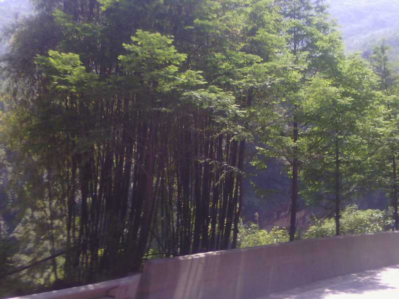 竹子随风舞动的身姿,吸引着我的目光向那边看去,一会儿是满满的竹林,一会儿是遍山的树木,一会儿是绿的不自然的河水一切的一切都陪着我的好心情。