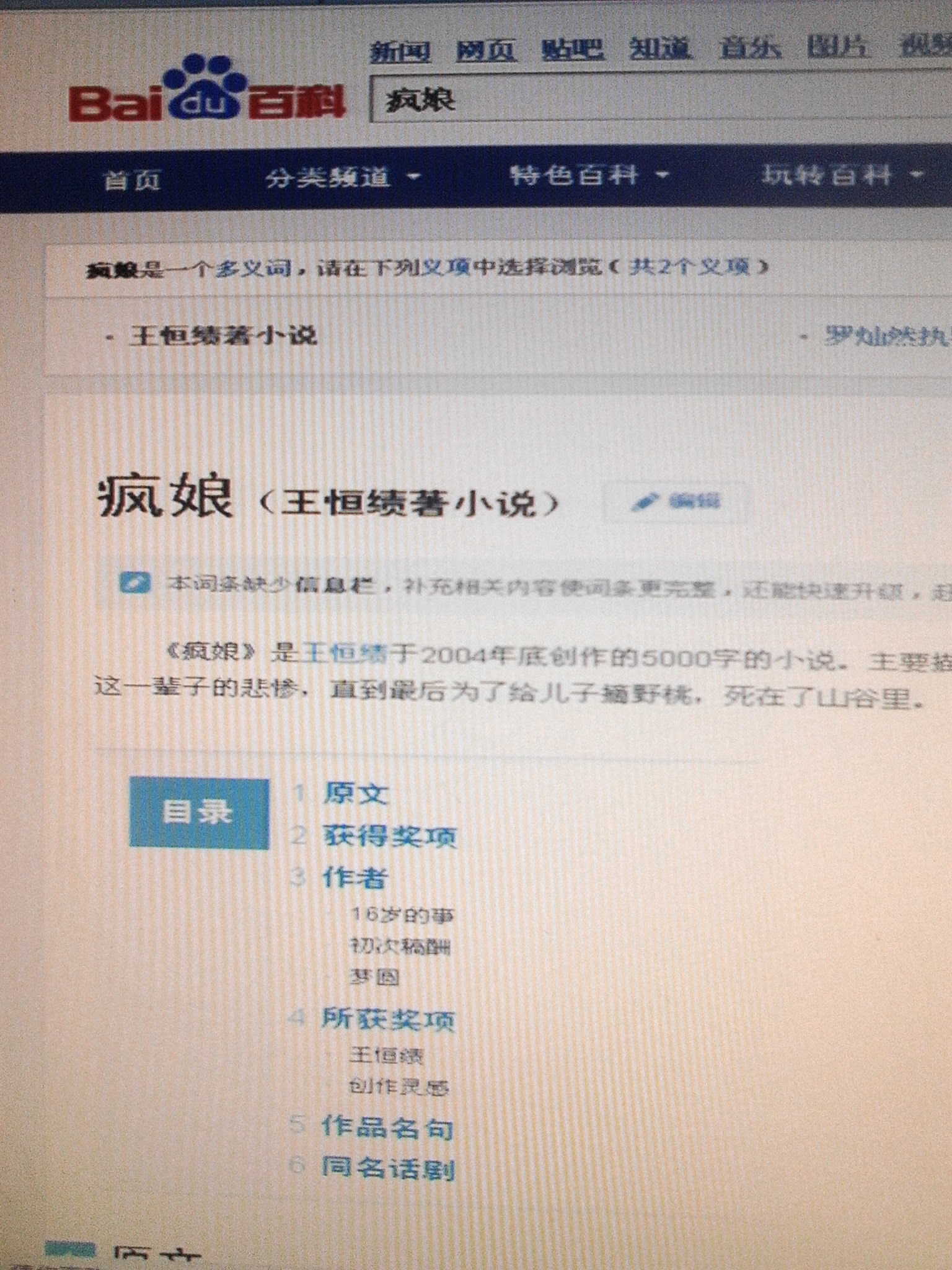 作者的娘是个疯子,随地大小便,说话含糊不清,甚至"谷草不分",但是她知道拾来一个破球给"我"玩;她疯,但是她能在别人欺负"我"时挺身而出;她傻,但她把给"我"送饭的路记得一清二楚。她是个疯婆娘,她会在"我"叫她娘时羞红了脸,她会在"我"夸桃甜时不畏惧危险给我去悬崖摘桃……没有人能解释为什么一个疯子能做到连常人都不敢去做的事。而我觉得这是正常的,因为儿子是疯娘的一切。她对儿子的爱,让我们看在眼里、疼在心里。可是,她的艰辛谁又能体会到。她精神有毛病,但她和全世界的母亲一样,都有一颗极为纯真的爱子之情。