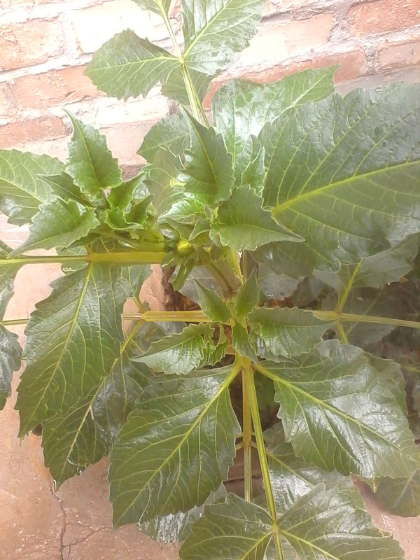 她的花就好像是一个小小的扁扁的车轮胎,她的叶子边缘有一排像锯齿一样的刺,花骨朵就像是一个小小南瓜。叶子是碧绿的,里面满含了水分。他的杆就像是一节节的竹子。花朵周围时常还有蜜蜂飞来飞去。