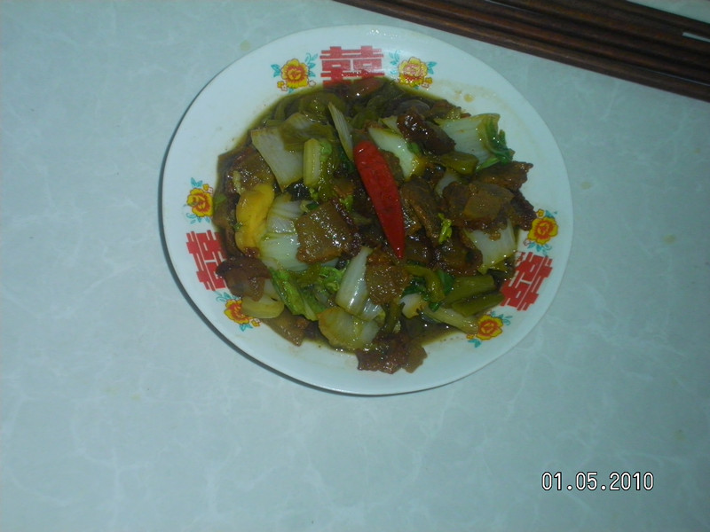 我们北方以前冬天没有新鲜蔬菜,腌制的酸菜就是最好的菜了。炒菜时,放些大油,然后葱蒜爆锅,用辣椒粉条烩酸菜,出锅时再放上小葱。色、香、味俱全,别提多好吃了。