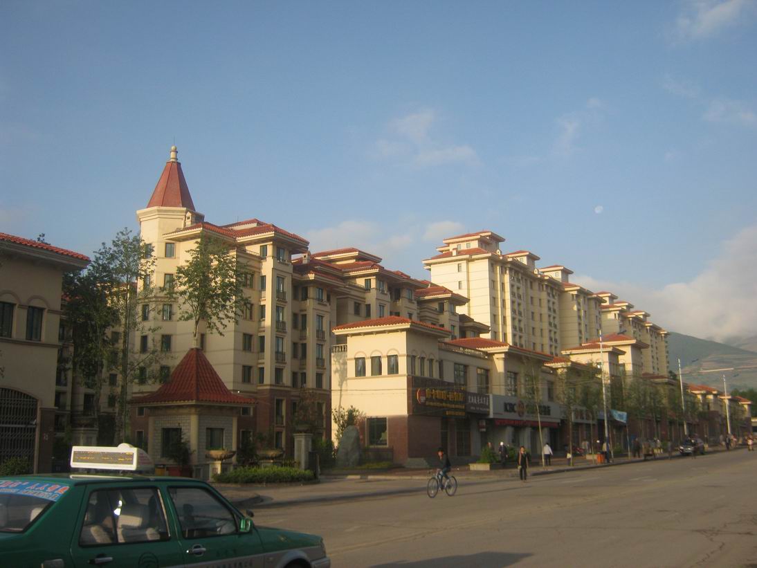 前面是一个住宅小区,名字叫香榭丽都,听这名字是不是感觉到了外国?那你就错了,这就是我们大通很普通的一个住宅区,红色的屋顶、黄色的墙,多漂亮啊,在阳光的照耀下熠熠生辉。