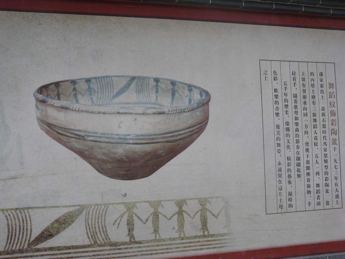 西部对于外界来说很神秘,其实我们家乡也有很丰富的文化。我的家乡在大通,大通县的孙家寨镇可是彩陶的故乡,大家的教科书上就有彩陶的图片,可别小看这个彩陶盆啊,这可是新石器时代的文物呀,里面有跳舞的人形纹饰,说明我们青海很早就有人居住了。
