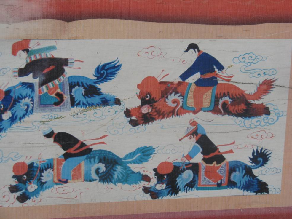 这是一幅在草原上骑马的图画,图上有汉族、回族、土族、藏族,这就是代表我们大通县的少数民族了,真是民族大团结啊,也表现了我们西部人毫发豪放的性格。这就是我们家乡的风土人情,以后你来我们这里就会有更深的印象了,欢迎来我的家乡旅游。