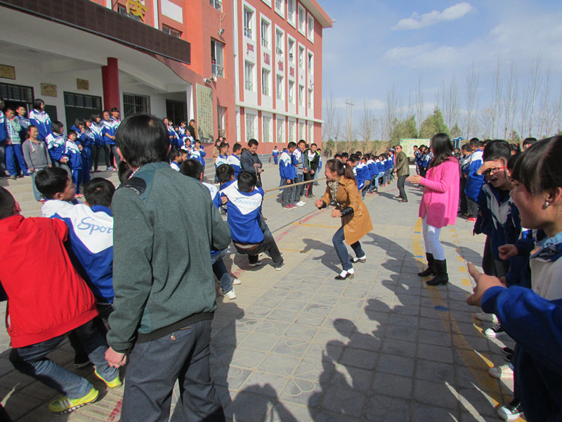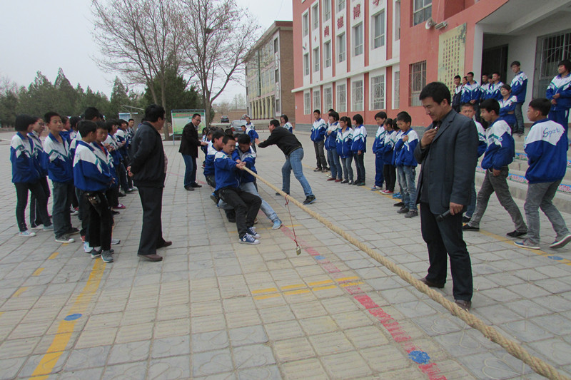 两军对战,必有胜负。你看,选手们都憋足了劲,一场比赛下来,手被绳子勒红了,但是那股追求上进的心情可是没有变。比赛间歇,他们正在交流比赛技巧。我们班呢,班主任正在传授比赛要领。伴随着震天的呐喊声,一班赢了。