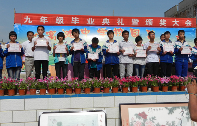 6月17日是九年级毕业的时候,那天,是他们初中三年的生涯:那天,他们离别了母校,那天,我们载歌载舞欢送他们。早上起来时,便看到天空乌云密布,好像要下雨,我在心里默默祈祷祈祷天不要下雨、典礼顺利进行,可是天还是下起了毛毛细雨,这下该怎么办?幸亏由校长的一句话,就算天下油也要举办!我们吊着的心终于放了下来。典礼开始了。首先是颁奖仪式,有好多同学都获得了奖状,那是一种荣誉。接下来便是节目表演了。每个节目都非常精彩、有趣。